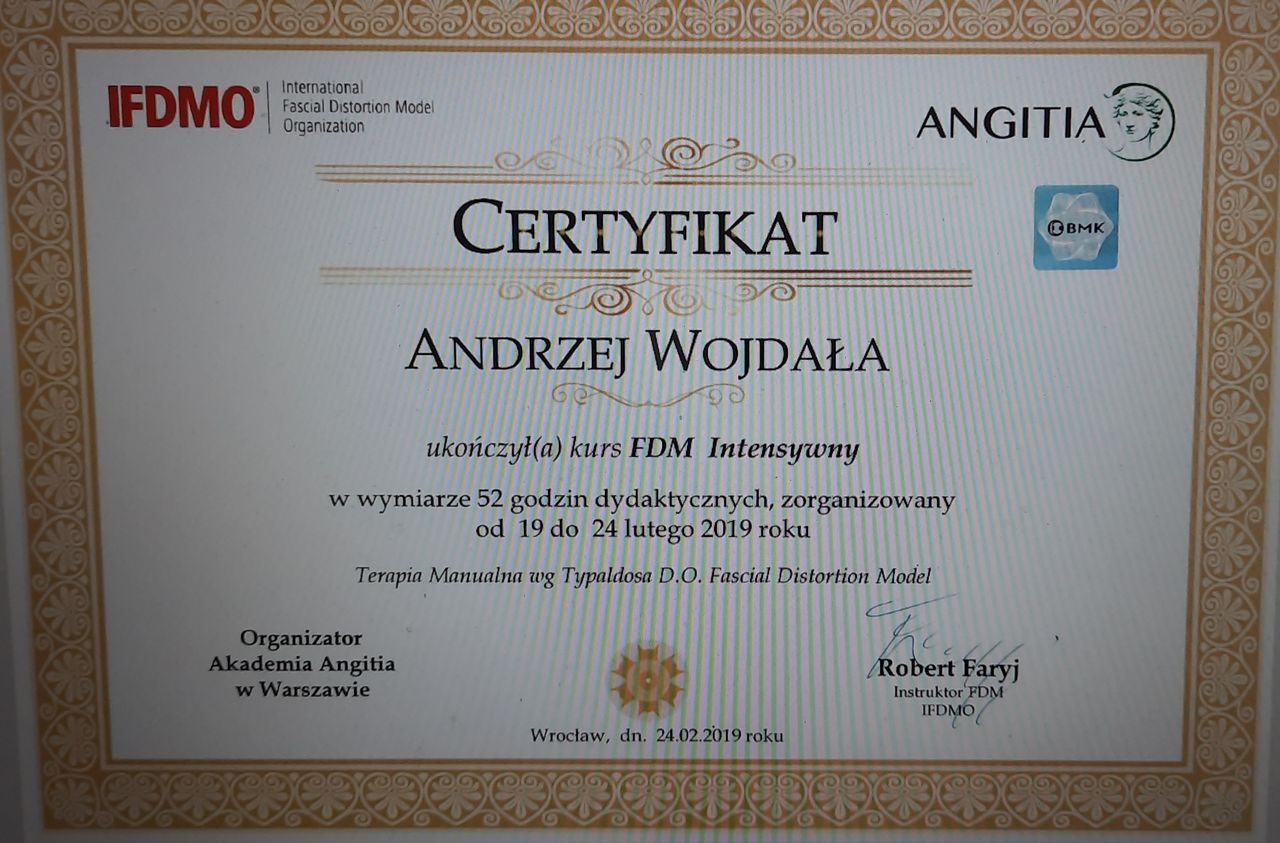 Jestem pod wielkim wrażeniem kompetencji pana Andrzeja! Męczyłam się z bólami kręgosłupa kilkanaście lat - ponad połowę mojego życia. Zwiedziłam w tym czasie kilkunastu wszelkiej maści ortopedów, masażystów, fizjoterapeutów, rehabilitantów. Załamywali ręce. U pana Andrzeja wystarczyło dokładne rozpoznanie, kilka intensywnych spotkań i bóle minęły. Pomógł również mojemu partnerowi, którego ortopeda kierował na rekonstrukcję więzadeł. Okazało się, że fachowe oko i dobrze dobrane ćwiczenia pomogły i obyło się bez ingerencji chirurga! Polecam wszystkim : )